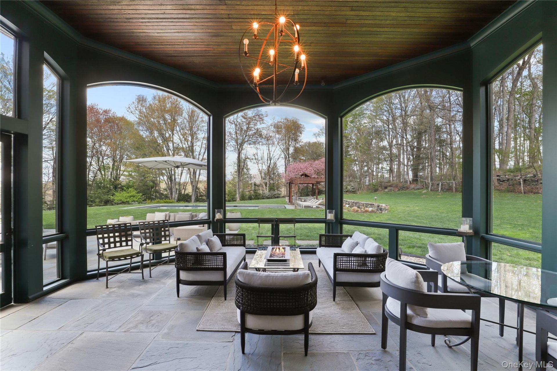 Escape to Bedford this summer! Available July 31-August 14.Experience the pinnacle of luxury living in this gated, custom-built estate, privately set in the heart of Bedford - just 3 minutes from town and under 55 minutes to New York City.The stunning 5-bedroom, 5.2-bath residence offers an unparalleled combination of resort-style amenities and pastoral charm. Spend your days on the private tennis, pickleball, and basketball court, take a dip in the sparkling pool and spa, or refine your short game on the putting green. The grounds are nothing short of extraordinary - stroll through fragrant fruit orchards, tend to lush herb, vegetable, and flower gardens, and start each morning with fresh eggs from the resident heirloom chickens.When it's time to unwind, the options are equally impressive. The sweeping screened porch with stone fireplace and outdoor kitchen is made for long summer evenings, while the covered porch's swinging queen daybed invites lazy afternoon naps. Stay active in the fully equipped gym featuring a Peloton, or restore body and mind in the private infrared sauna.Inside, two beautifully appointed home offices - each with its own fireplace - ensure that if work calls, it never feels like work. The lower level is all fun - billiards, ping pong and a theater with a 100 screen.This is not just a rental. It's a summer to remember.Additional weeks available at a preferred rate.